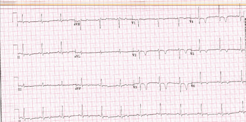 Is this Wellens syndrome? T-wave inversions in V1-V6, with Type B Wellens pattern in V2-V3? LAD stenosis? LikeLike Reply
