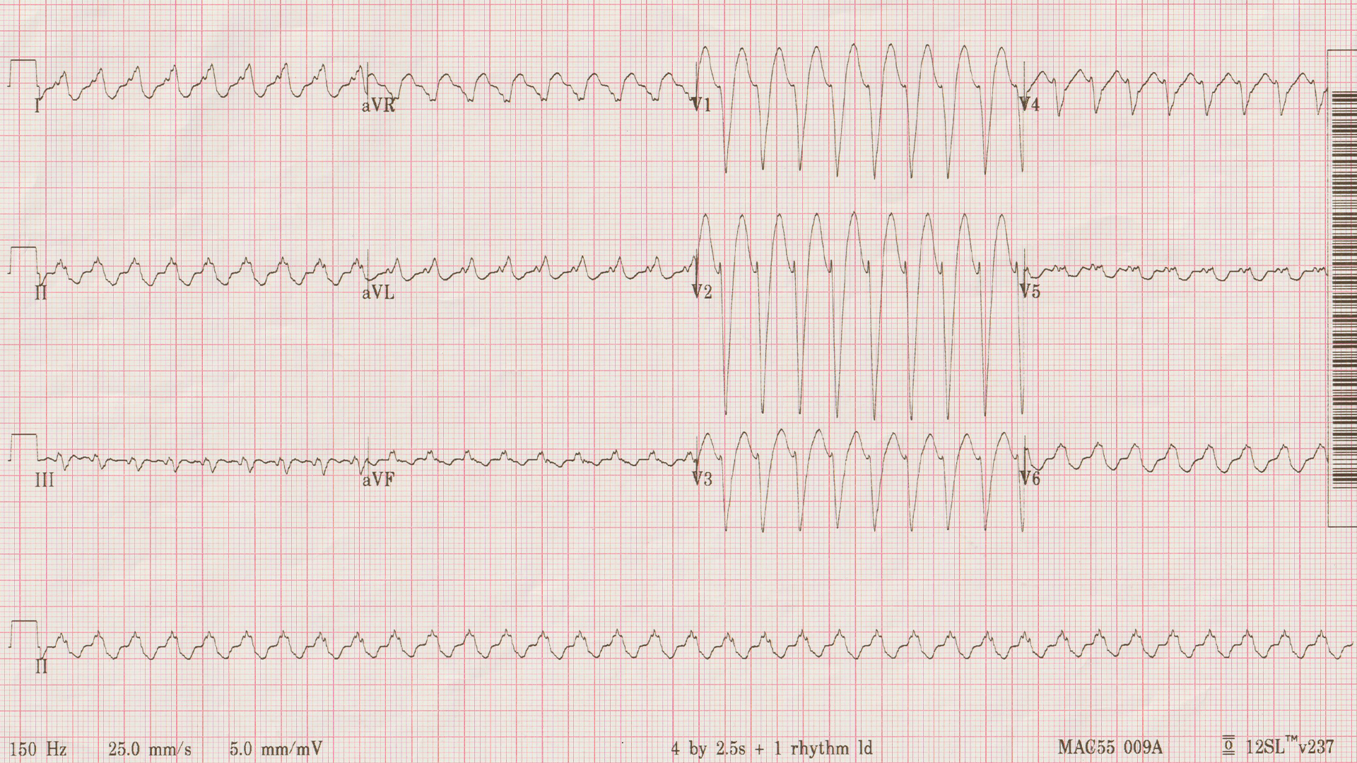 On a related note, I have changed the paper speed away from the standard 25 mm/s. Speeding up the paper makes the p waves easier to find in cases of tachycardia. I have done that when sorting out sinus tachycardia from SVT was a problem.