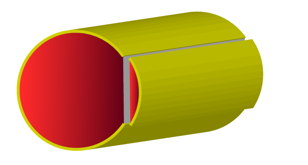 The “cylinder tangent effect” or “cylinder tangent error” happens when we view a cylindrical (tubular) structure in long axis with the beam not passing through its widest point. The ultrasound catches an off-center slice, which can make the the structure appear smaller on the screen than it actually is.