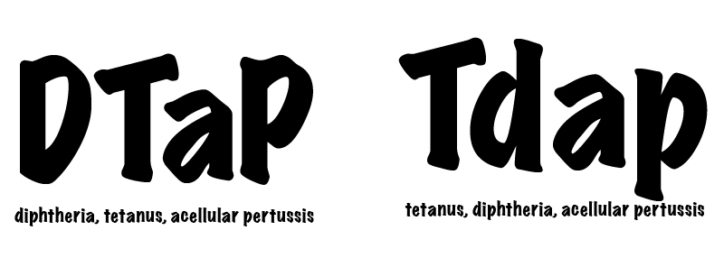 I can’t think of anything more confusing than the names DTaP and Tdap. The capital letter scheme is helpful when they are written, but in conversation they sound very similar to those unfamiliar with their differences.