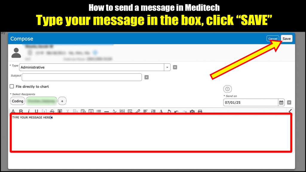 Send a message within Meditech Share this: Click to share on X (Opens in new window) X Click to share on Facebook (Opens in new window) Facebook Like Loading...