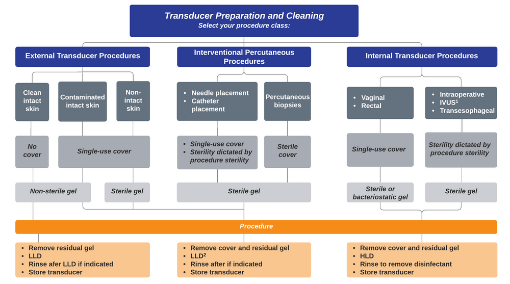 2. Guidelines for Cleaning and Preparing External- and Internal-Use Ultrasound Transducers and Equipment Between Patients as well as Safe Handling and Use of Ultrasound Coupling Gel. AIUM. https://www.aium.org/officialStatements/57